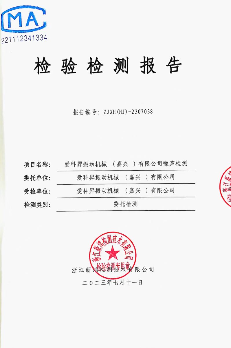 爱科昇振动机械(嘉兴)有限公司于2023年进行的环境污染防治工作,下图是废气检测报告和噪声检测报告。